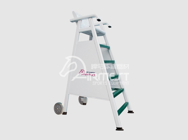 设计:裁判椅支架采用全新八字型可分拆组合设计,结构稳固,踏板防滑条纹设计,上下安全方便。椅脚管套采用高弹橡胶材料,有效保护球场地面